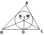 完成这个题目后,启发学生得出如下结论: 和三角形的各边都相切的圆可以作一个且只可以作出一个.