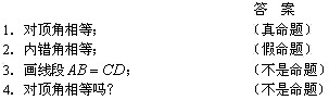教师提问:“……相等的角是对顶角”是不是命题?……(3)