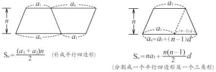项和公式,这里对图形进行了割、补两种处理,对应着等差数列前