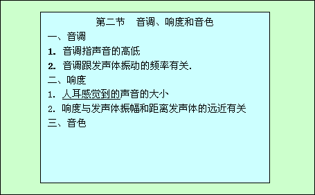 2、知道乐音的音调跟发声体的振动频率有关;响度跟发声体的振幅和距发声体的远近有关;不同发声体发出的乐音的音色不同.