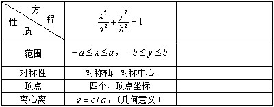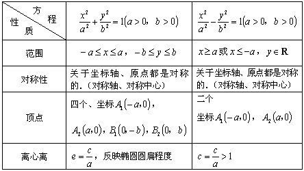 说明:研究双曲线几何性质后,依次在另一纵列填上相应的性质.