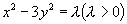 与双曲线有两个交点,则下述方程组有两组不同解: