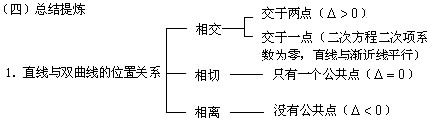 2.注意二次曲线、二次方程、二次函数三者之间的内在联系,直线与双曲线的位置关系通常是转化为二次方程,运用判别式、根与系数关系以及两次方程实根分布原理来解决.