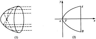 例2 探照灯反射镜的轴截面是抛物线的一部分,光源位于抛物线的焦点处.已知灯口圆的直径为
