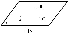 公理3 经过不在同一条直线上的三点,有且只有一个平面(图6).