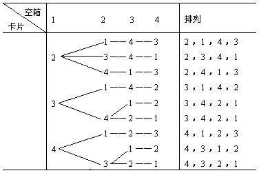 第四步把最后符合条件的一张放在第四空箱.具体排法,用下面图表表示: