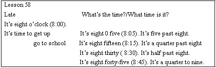 1.先让学生用两种方法写出第三部分所列的时间,然后,把每组句子读熟。