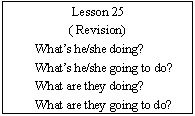 Help the students to summarize the usage of present progressive and simple future tense. And show some pictures to ask the students to talk about, using the two tenses that have just been learnt.