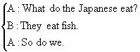 T: Ask the class what the Chinese eating and the American eating habits are and what the Japanese favourite is. Ask the students if they have the same habits.