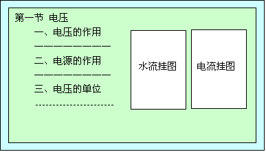 2.演示小灯泡发光实验,用类比方法讲解“电压使电路形成电流,电源是提供电压的装置”.类比的方法要具体,可以参考下面的方式: