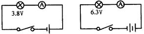 ①6.3V灯泡的电阻比3.8V灯泡的电阻大.