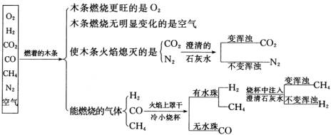 例3:现有氧气、氢气、二氧化碳、一氧化碳、甲烷、氮气和空气七种气体,如何加以鉴别?