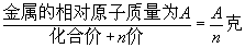 例5 某金属的相对原子质量为A,它与稀硫酸发生置换反应时显正n价。现有0.5A克该金属与足量稀硫酸反应,放出氢气的质量为( )