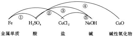 分析:本题涉及到单质、氧化物、酸、碱、盐各类物质间的相互反应关系,比较复杂。思考时首先要将物质进行分类,根据各类物质的性质去判断能发生哪些反应;进而根据置换反应和复分解反应发生的条件,确定哪些反应能发生,哪些反应不能发生,能发生反应的方能写出相关的化学方程式。为了思考有序进行,通常可用下面的图示进行分析: