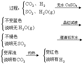 、水蒸气中的一种或几种。将混合气体依次通过无水硫酸铜、少量品红试液、澄清石灰水、灼热