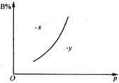 分析:图中的曲线表示一定温度下反应物B的体积分数B%与压强之间的平衡线。且B%随着压强的增大而增大的反应,则