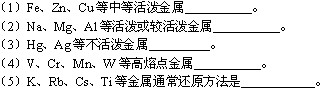 根据每种金属的特点应选择最佳方案。其中(5)K、Rb、Cs、Ti等利用的原理比较特别,不是用活泼金属置换不活泼金属,而是平衡的原理,如