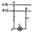 如图所示,电工检查电路故障时,发现开关闭合后,灯L不亮,用测电笔侧C、D处时,发现两处都能使氖管发光,而测试A、B两处时,只有在A点时氖管发光,则故障可能是(