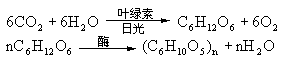 思路分析:解答本题要正确掌握光合作用中CO2和H2O在叶绿素和日光作用下首先生成葡萄糖,葡萄糖再转化为淀粉的过程。