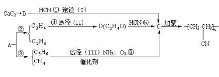 例5 人造羊毛的主要成分为聚丙烯腈,结构如下,此物质可由以下三种途径合成,已知A是石油分馏的一种产品。