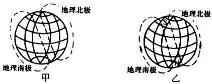 在图甲上标出地磁场磁感线的方向及地磁南、北极.