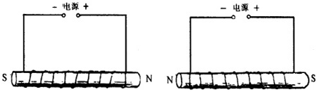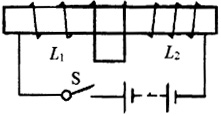 开关S闭合后,线圈产生磁性.根据线圈上电流方向,利用安培定则判定,可判断出线圈L1的右端为N极,线圈L2的左端为N极.根据磁极间相互作用可知,同名磁极相互排斥,所以两线圈左右分开.
