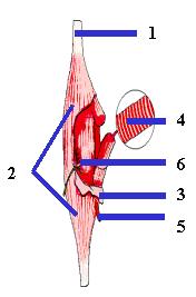 [2]肌腹 [3]结缔组织膜 [4]肌细胞 [5]血管