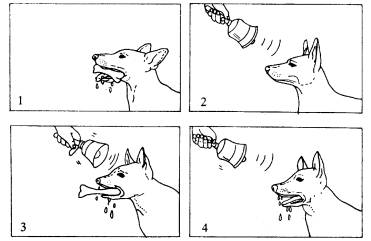 ④听到铃声,狗分泌唾液