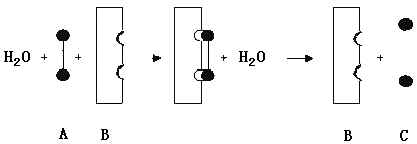 例3 下图所表示的是一个生物化学反应过程,图中的黑球表示两个相同的单糖分子,则A、B、C分别为: