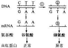 答案:(1)①基因突变 ②CAT ③GUA (2)血红蛋白 DNA碱基序列发生了改变