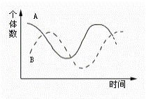 由曲线的变动趋势可知,在一个生态系统中,当物种A大量繁殖时,物种B的数量也会随之大量增加;当物种B的数量增多后,就会大量捕食物种A,使物种A的数量随之减少;当物种A减少到一定程度后,物种B会因食物不足而使个体数逐渐下降,可见物种B以物种A为食,二者间是捕食关系。