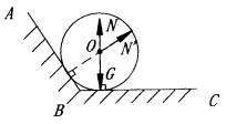 解析:静止的球A与光滑平面AB、BC接触着,A球与平面BC接触且相互挤压,故BC对球产生向上的弹力N,球A还受到重力G与N平衡.若A球还受到AB面的弹力N′,将使球发生运动,所以N′不存在,即AB面对球没有弹力作用.