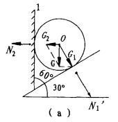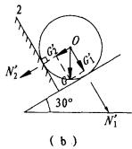解析:如图(a)所示,据球受重力的作用效果,同时挤压斜面和挡板,故确定了重力的两个分力方向分别垂直斜面和挡板.所以能分解