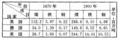 材料一:19世纪30年代英、德、美三国在煤、铁、钢方面情况统计