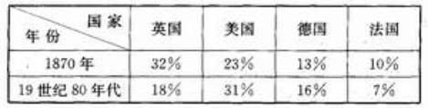 材料二:各国19世纪70、80年代在世界工业总产值中的比例