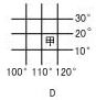 解析:此题涉及5个知识点:①从20°W经0°经线至160°E为东半球;从20°W经180°经线至160°E为西半球。②南北半球的划分。③纬度0°~30°为低纬度,30°~60°中纬度,60°~90°为高纬度。④回归线之间为热带,回归线与极圈之间为温带,极圈之内为寒带。⑤我国的范围,经度73°E~135°E,纬度4°N~53°N。D图中甲点位于20°N、110°E。答案为D。