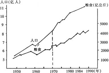 (3)从人口增长与粮食增长关系来看,粮食问题解决,一方面要发展_______________,另一方面要控制_______________。