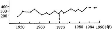 7.下图是1949年至1989年我国人口、粮食产量、人均粮食占有量增长趋势图,读图完成各题: