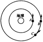 例3 如图所示,A、B、C是在地球大气层外的圆形轨道上运行的三颗人造地球卫星,下列说法中正确的是哪个?( )
