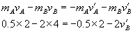 例8 如图所示,在光滑水平面上,质量为0.5kg的球A以2m/s的速度向右运动与迎面而来的质量为2kg速度大小为4m/s的B球正碰,碰后A球以2m/s的速率被反弹,求此时B球的速度.