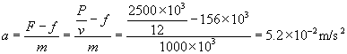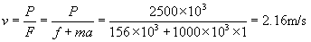 例题:火车在运行中保持额定功率2500kW,火车的总质量是1000t,所受阻力恒定为