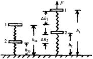 末状态下,下面的弹簧下端刚脱离桌面,下面的弹簧已恢复原长