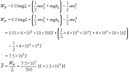 kg的汽车开上一山坡。汽车沿山坡每前进100m,其高度升高2m。上坡时汽车速度为5m/s,沿山坡行驶500m后速度变为10m/s。已知车行驶中所受阻力大小是车重的0.01倍,试求: