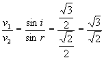 例题3:如图所示一列机械波从一种介质进入另一种介质发生的现象,已知波在介质1中的波速为v1,波在介质2中的波速为v2,则v1:v2为多少?