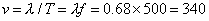 例题2 一玻璃管竖直插入一水槽中,在玻璃管上端有一发声音叉,频率为200Hz,上下移动玻璃管,测到相邻两次共鸣时管中空气柱的长度差为34cm,试求声速.