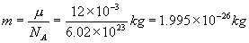 已知碳的摩尔质量为12g,阿伏加德罗常数为6.02×1023mol-1,求每个碳原子的质量.