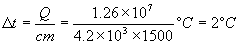 锅炉中盛有1500kg的水,当对其加热使其内能增加1.26 ×107J时,温度将上升多少?水的比热容c= 4.2 ×103J/(kg.K) .