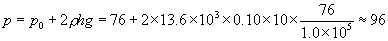 设玻璃管内横截面积为S,则有: