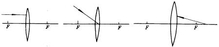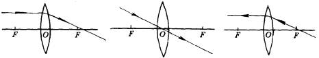 点拨:焦点的意义就是能使跟主轴平行的光线会聚在主光轴上的一点,所以平行主轴的光线折射后过焦点,因光路可逆,过焦点的光线折射后平行于主轴射出,经过透镜中心的光线折射后方向不改变.