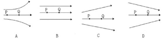 ,应是E越来越大.电场线描述电场强度分布的方法是,电场线密度越大,表示场强越大,沿PQ方向.电场线密度增大的情况才符合题的条件,应选D.